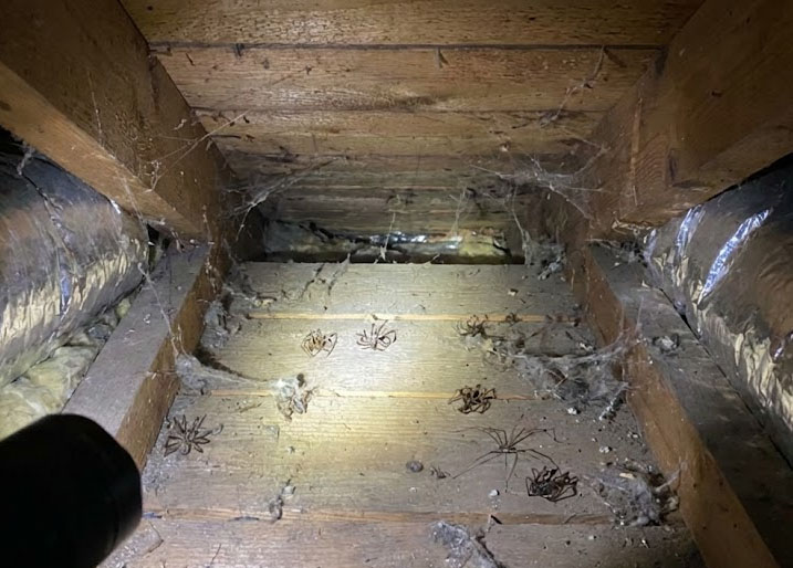 1. Roof Void & Subfloor Dusting: Technicians use a motorized duster to blow insecticidal powder into your roof cavity and subfloor. This is critical for Redback, Black House, White Tail and Huntsman spiders, which often live in roof spaces and subfloor.